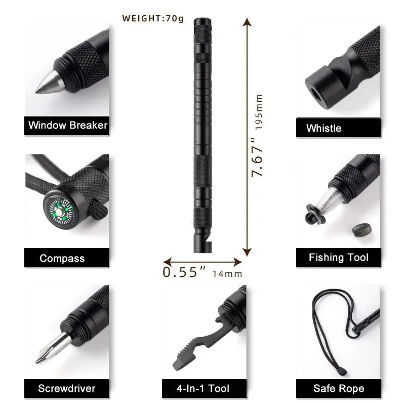 Introducing the 10-IN-1 Multi Function Portable Self Defense Pen—the ultimate solution that combines essential tools into one compact and durable device. This multi function pen is designed to keep you ready for any situation without weighing you down.
