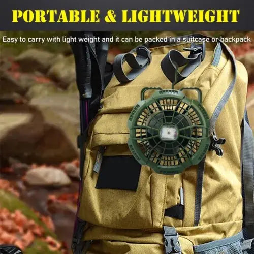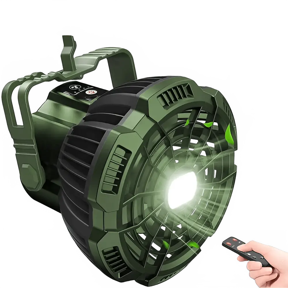 Designed for outdoor enthusiasts who never compromise on comfort, this durable, portable 2-in-1 device keeps you illuminated and cool, no matter where your adventures take you. Its compact form and long-lasting battery ensure you’re ready for any campsite, cabin, or improvised shelter.