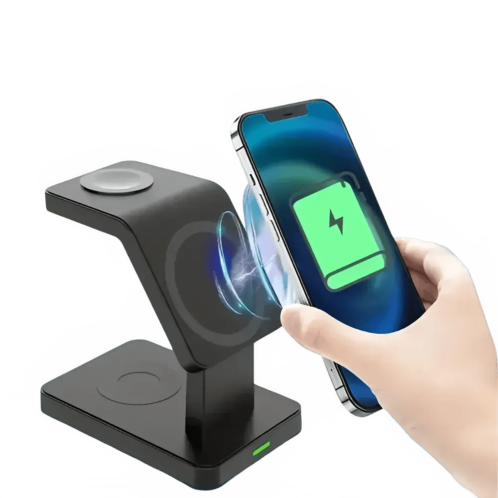 Meet the Epic MagSafe 3-in-1 Wireless Stand With Magnetic Alignment — a revolutionary charging station that powers your iPhone, Apple Watch, and AirPods all at once with precision magnetic alignment that snaps into place within 1 second. Crafted in a sleek, space-saving design, it keeps your desk organized and your devices ready without clutter.