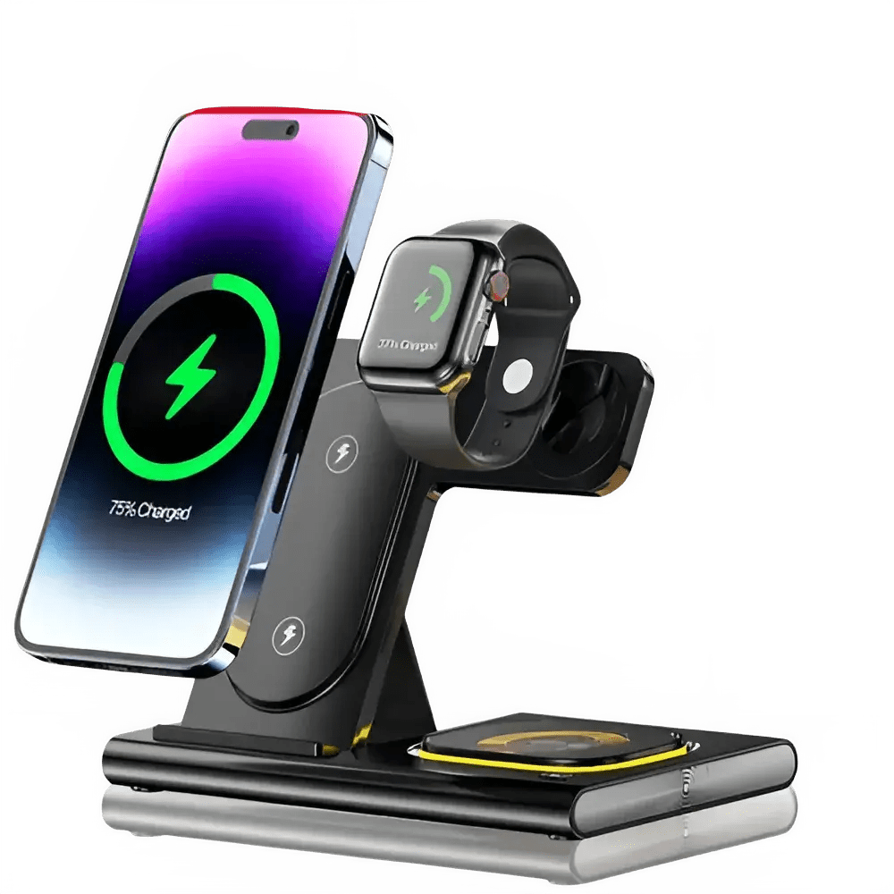 Meet the Powerful 30W Wireless Three-In-One Charger for iPhone, Apple Watch, and AirPods — the fastest, tidiest way to power your Apple ecosystem. This smart charging station lets you power your iPhone, Apple Watch, and AirPods simultaneously, eliminating cable clutter and keeping your desk neat.