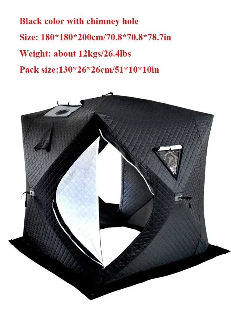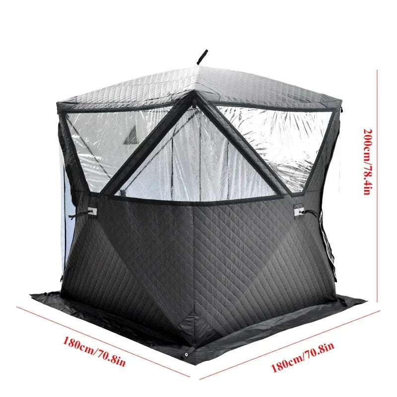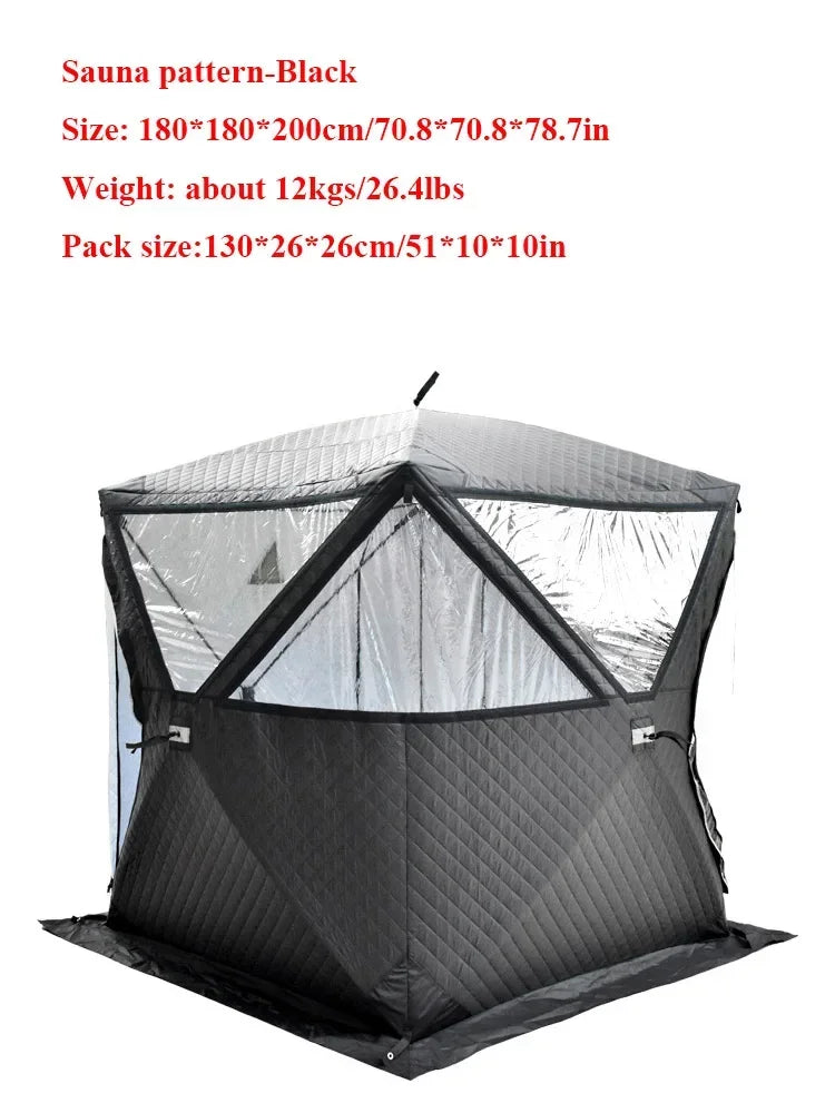 Experience warmth, comfort, and outdoor luxury with our Cozy 4-Season Camping Sauna Tent. Designed for 3–4 people, this premium shelter combines rugged durability with a built-in sauna experience, perfect for winter ice fishing and all-season camping. The outer shell uses robust 210D Oxford fabric paired with thick insulation (120g acupuncture cotton) to lock in heat and shield you from cold winds.