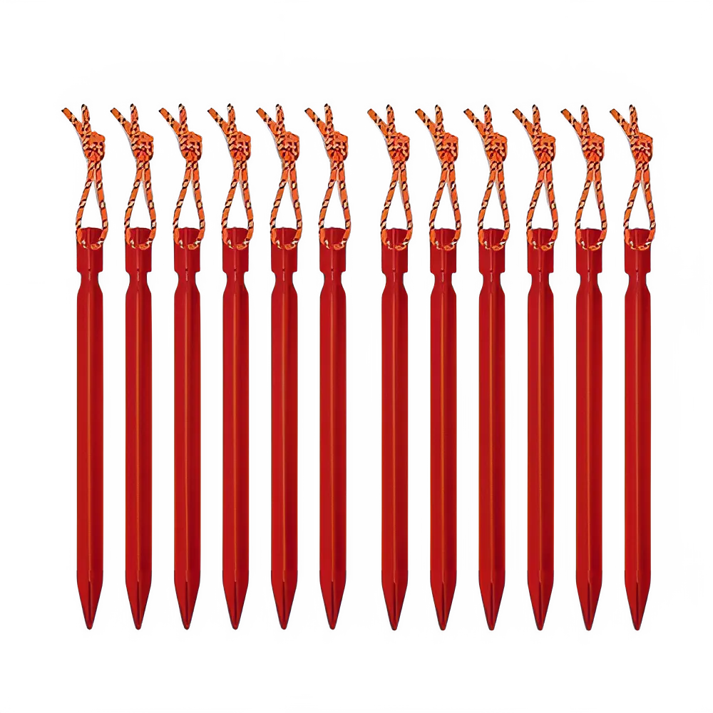 Secure your outdoor retreat with Rugged Aluminum Tent Pegs featuring a reflective rope for easy night setup. Built for durability and performance, these sturdy pegs anchor your tent in ground of any type, giving you reliable stability and peace of mind on every adventure.