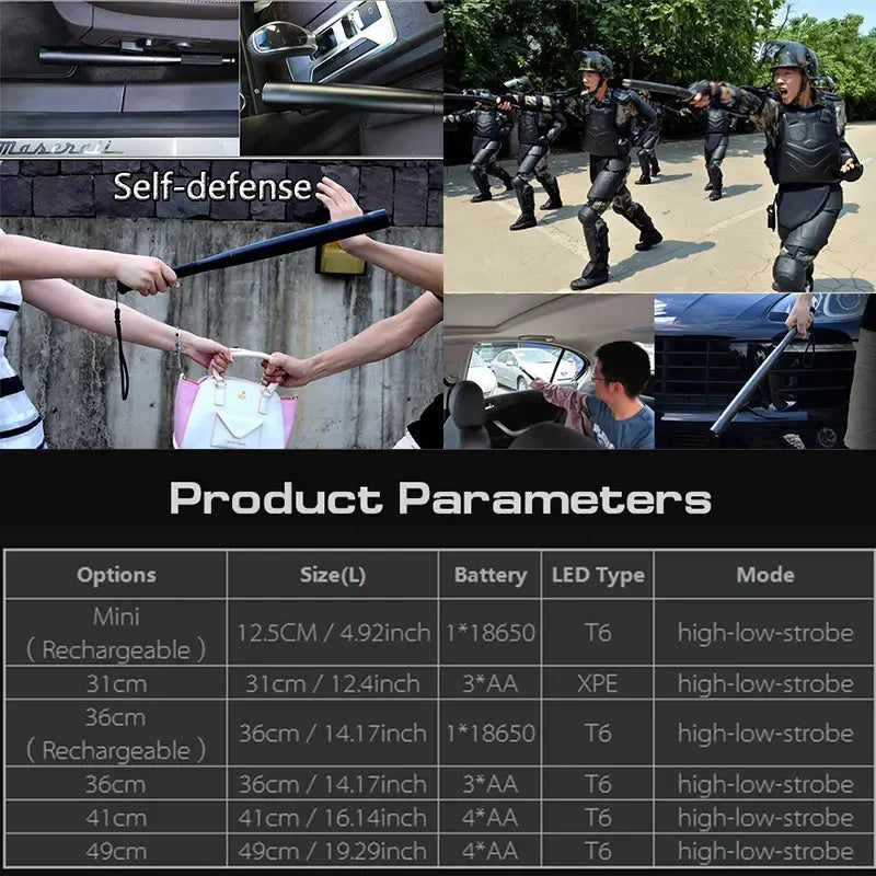 Baseball Bat LED Flashlight Self Defense 3800 Lumens
