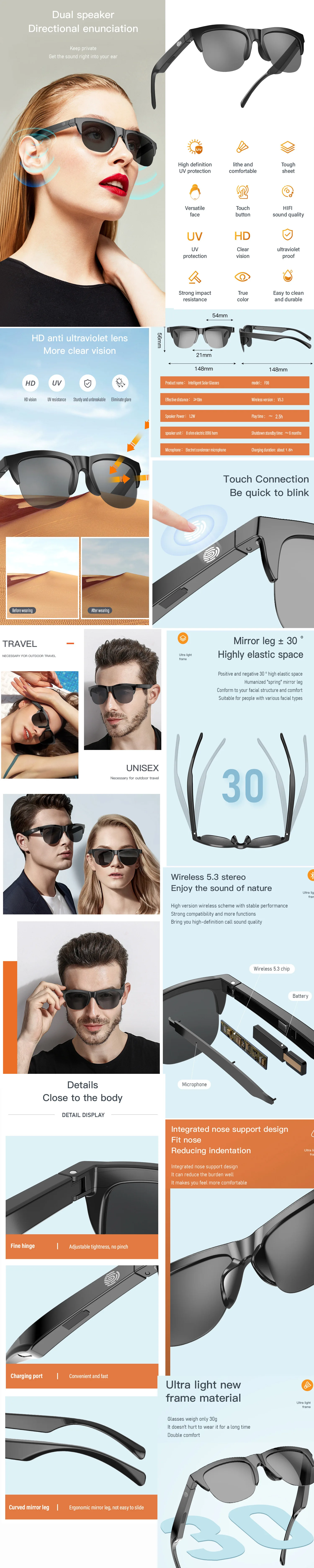 F06 Bluetooth Glasses Polarized Waterproof Mens Sunglasses