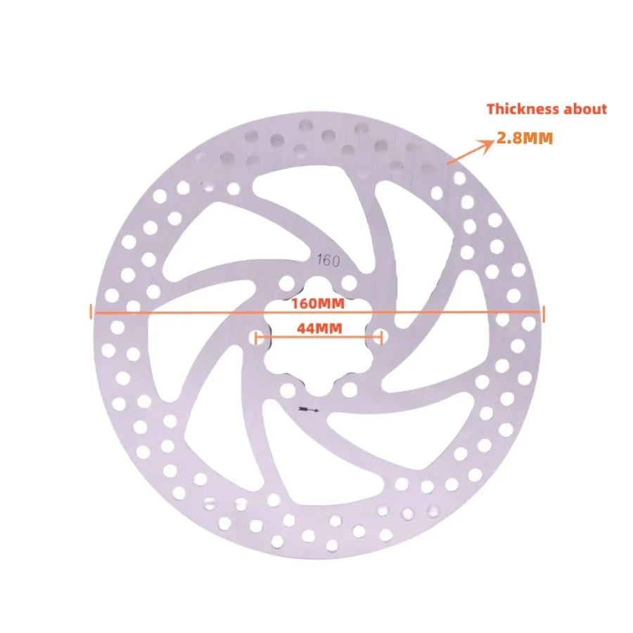 With a stainless steel construction, it resists corrosion and wear in mud, rain, and sweat, ensuring consistent braking performance ride after ride. The 2.8 mm thickness optimizes balance between weight and stiffness, helping maintain a firm bite and reliable modulation even on long descents. The dual-size options (160 mm and 180 mm) let you tailor your bike’s braking power to your terrain and riding style, while the precise 6-bolt mounting ensures a secure, vibration-free fit.