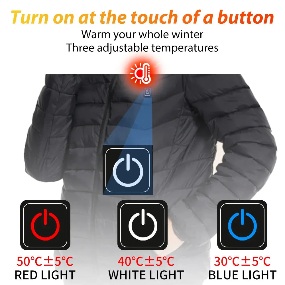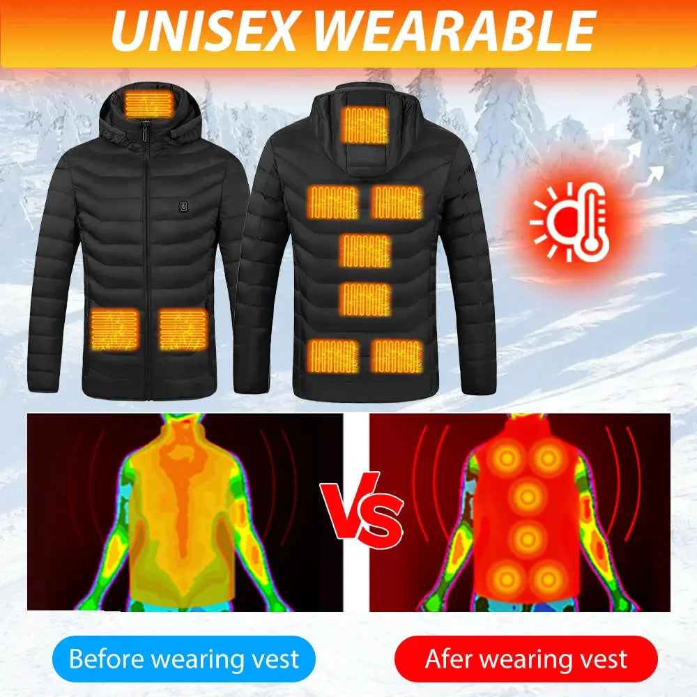 Mens Heated Winter Jacket With USB Heating Water Resistant