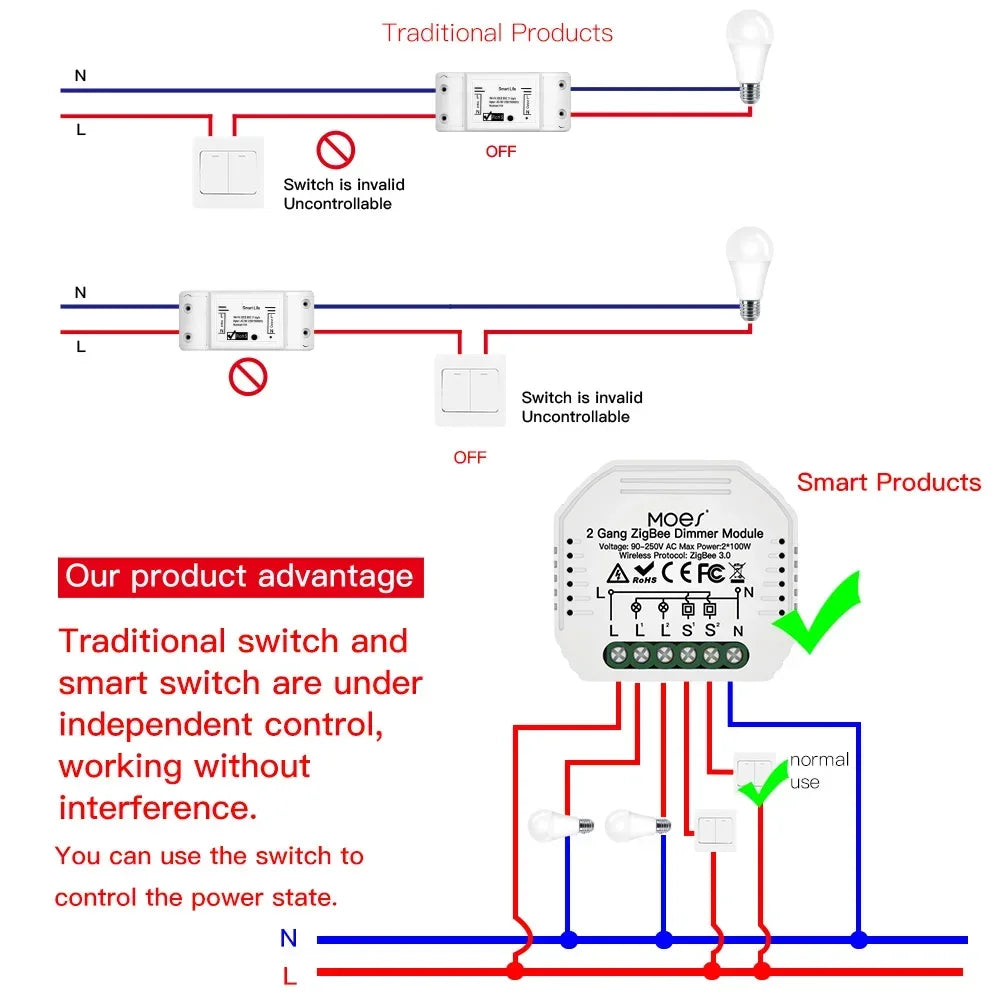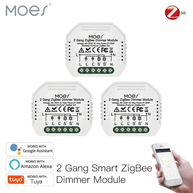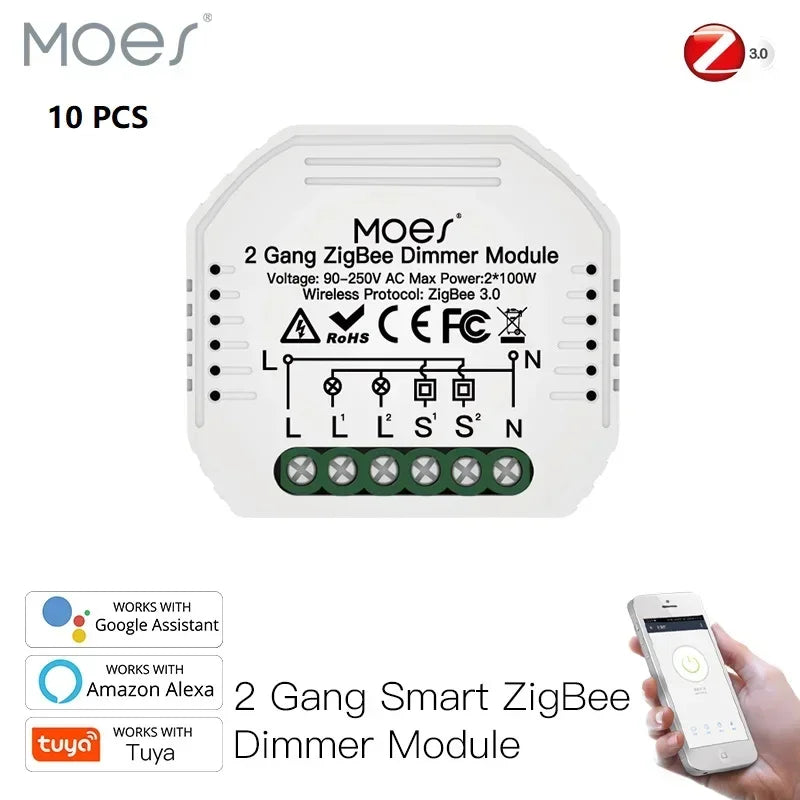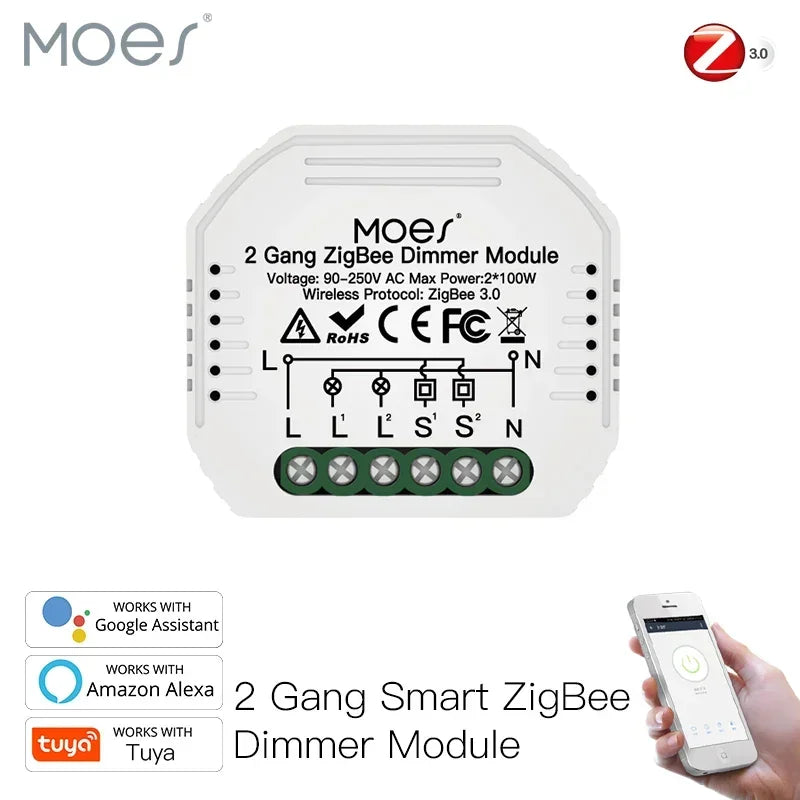 Why choose this Moes dimmer module? It combines compact mini design with true ZigBee 3.0 performance, providing a reliable smart lighting upgrade without reconfiguring your entire home network. It can be used as a standalone module or integrated into a broader smart home setup via Tuya or Smart Life, turning most compatible devices into smart devices with a simple install.