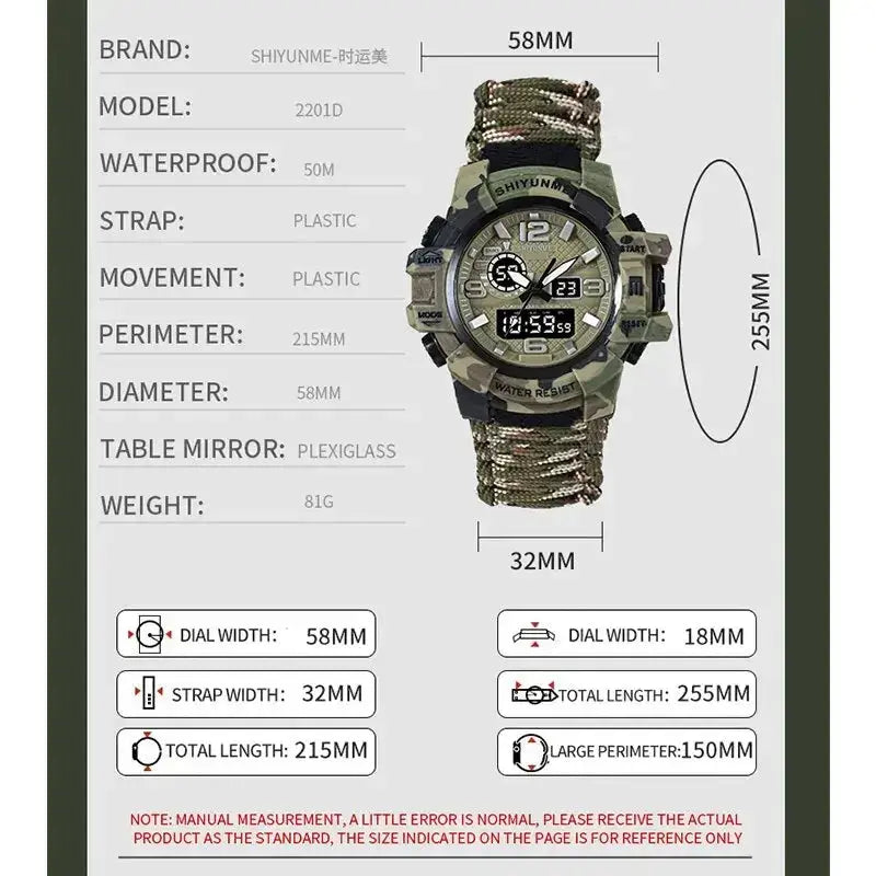 • Emergency Gear :This watch is not just a stylish accessory but an important piece of emergency gear that can save your life in challenging outdoor situations.