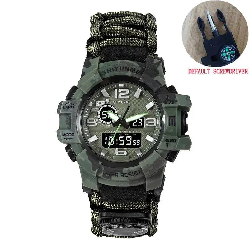 • Multifunctional Watch :This outdoor survival watch is not just a timepiece, but a versatile tool for camping, hiking, and other outdoor activities. It's packed with features that can come in handy in emergencies.