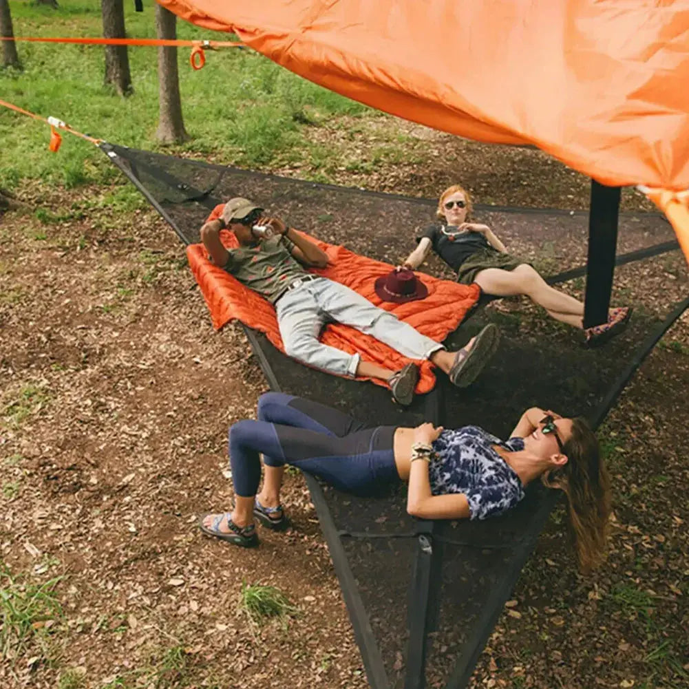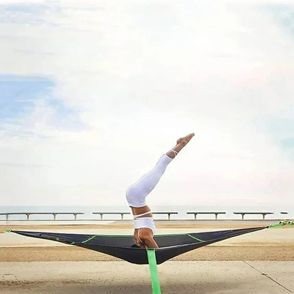 Portable Triangle Hammock Anti-Rollover Camping Hammock Multi Person Aerial Mat Convenient Hanging Sleep Bed for Hiking Travel
