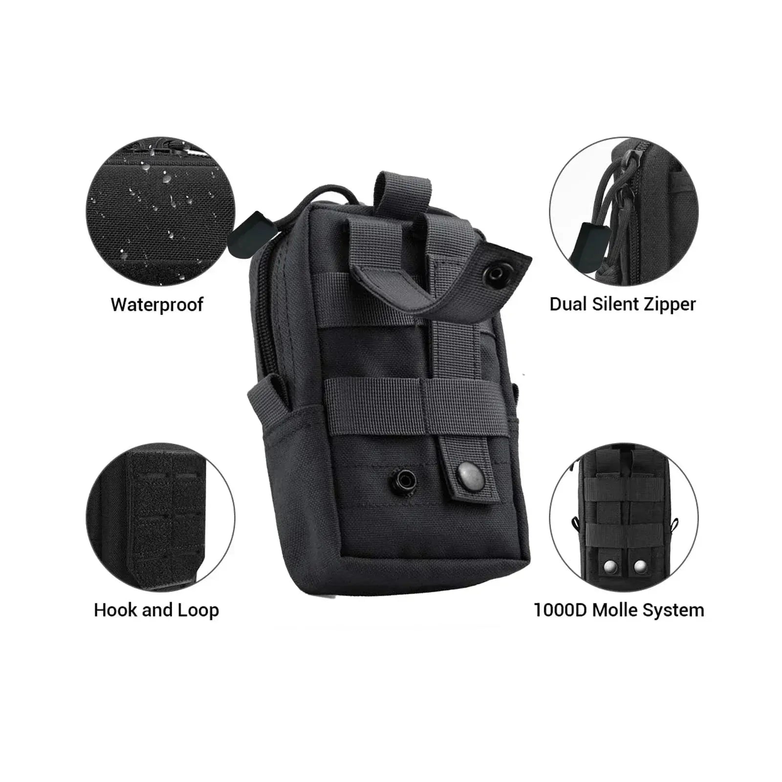 Rugged Nylon Material: This unisex tactical bag with soft Inner Interior, Molle pouch constructed by durable premium 1000D nylon fabric, durable and water-resistant. The middle pocket is made of shockproof soft velvet padded interior lining to protect your smartphone and cards in any outdoor condition.
