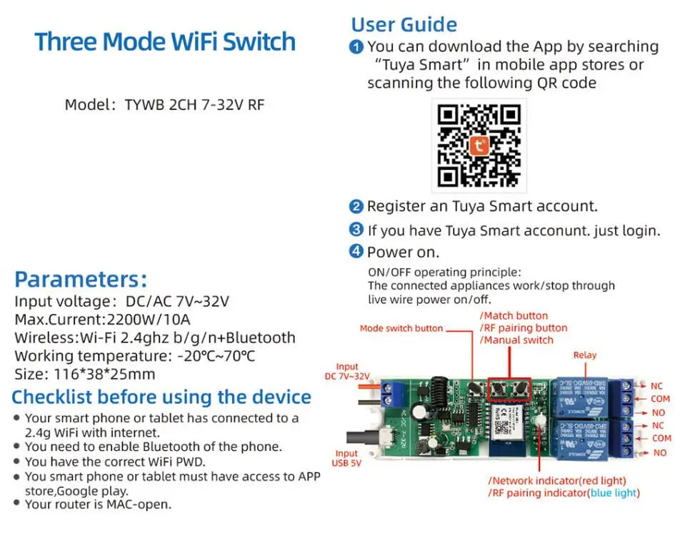 Designed to simplify smart living, this device connects to your home network via the Smart Life / Tuya Smart App, letting you remotely control connected devices from anywhere. No programming is required—just connect to a 2.4 GHz WiFi network and start automating.