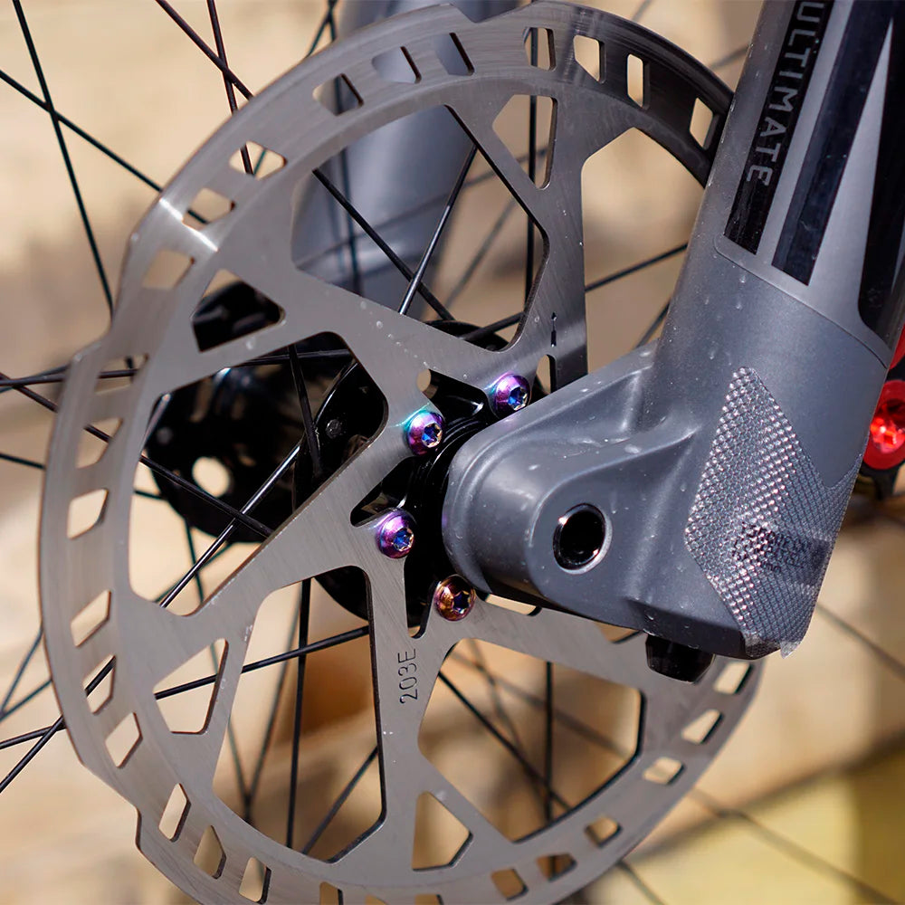 Disc brakes generate heat when slowing the wheel, so allow the rotor and caliper to cool after heavy braking. Ensure compatibility with your hub and caliper, and follow torque specs: tighten all six bolts in a star pattern to 6 Nm to avoid thread damage. Clean the hub mounting surface and rotor with isopropyl alcohol before installation, align the rotor direction with forward wheel rotation, and check for rubbing after installation. Reinstall the wheel and spin to confirm smooth operation.
